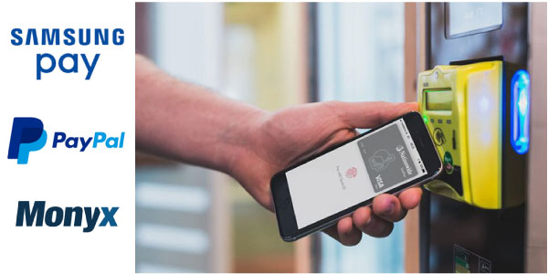 3. Con la aplicación Paypal, Monyx o Samsung pay abierta, acerca el celular al lector y PAGA desde el Celular